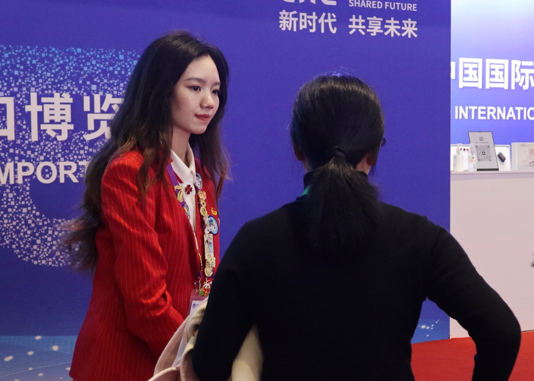 外国语学院英语专业的陈阳同学作为一名一年级“小叶子”,在综合接待组负责为多家国际企业提供双语服务。受到从事国际贸易工作的父亲的影响,从小到大她一直希望能为国际交流尽一份力。通过参与进博会志愿者工作,她真正理解了父亲一直教育她“要在海外市场为‘中国制造’赢得声誉”这句话的涵义。