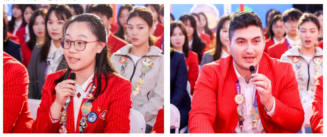 志愿者代表分享了他们服务进博时的所思所感。综合接待组组长、2025级学前教育专业“小叶子”何慧表示将把初心使命深深扎根于岗位服务之中,发挥党员的先锋模范作用。新闻宣传处志愿者、2023级金融学专业留学生斯巴达克以“桥梁”为喻,将服务进博看作连接个人成长与中俄友谊的重要纽带。