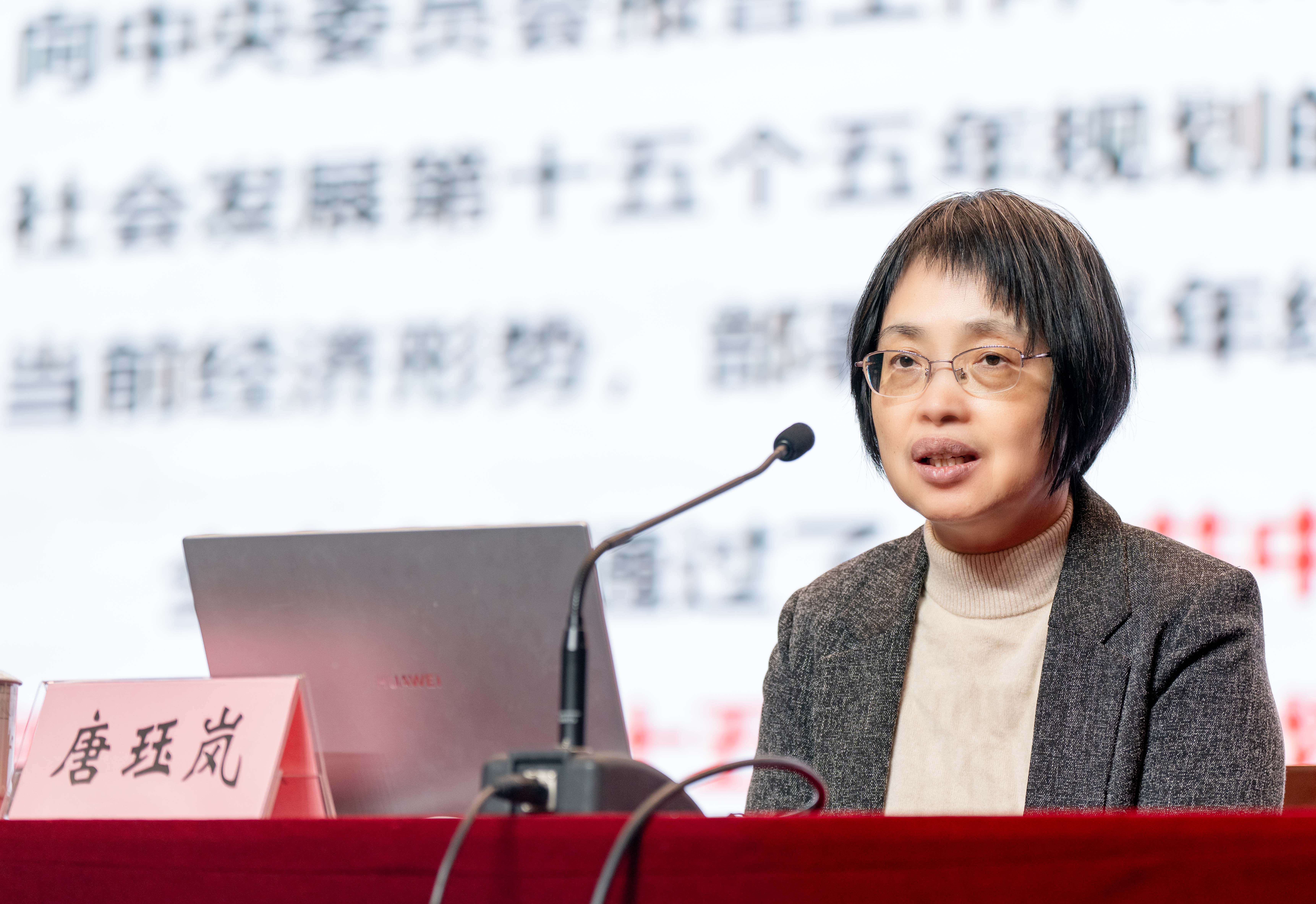 上海市学习贯彻党的二十届四中全会精神宣讲团成员、中共上海市委党校经济学教研部主任唐珏岚教授以“学习贯彻党的二十届四中全会精神,推动‘十五五’时期社会主义现代化国家建设迈上新台阶”为题作首场报告会,重点围绕习近平总书记重要讲话和《建议》内容,系统梳理了“十四五”时期我国发展取得的重大成就,深入阐释了“十五五”时期我国发展面临的国际国内形势与新的历史方位,全面解读了“十五五”时期经济社会发展的指导思想、基本原则、主要目标,以及建设现代化产业体系、加快高水平科技自立自强、激发全民族文化创新创造活力等十二个方面的重大任务部署。报告观点鲜明、逻辑清晰、内容翔实,兼具理论高度与实践深度,为帮助干部师生深刻理解全会的重大意义和科学内涵,在以中国式现代化全面推进强国建设、民族复兴伟业的新征程上奋发有为提供了有力指导,为宣讲团成员开展宣讲提供了权威辅导。