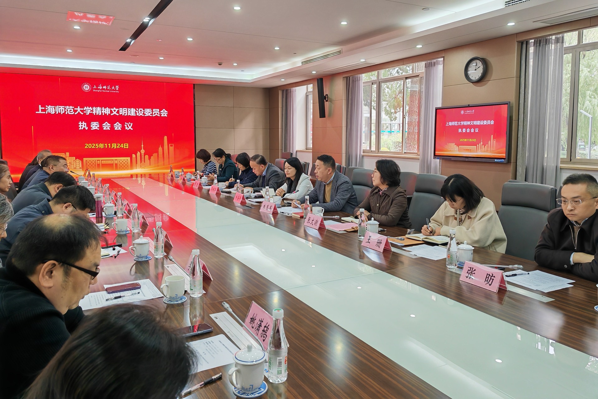 为深入学习贯彻党的二十届四中全会精神,弘扬社会主义核心价值观,进一步加强校精神文明建设工作,11月24日校精神文明建设委员会执委会会议在徐汇校区外宾楼101会议室举行。校党委副书记、副校长、精神文明建设委员会执委会主任朱惠军主持,校党委副书记、执委会副主任杨海燕,副校长、执委会副主任蒋明军出席。校精神文明建设委员会执委会成员参加会议。
