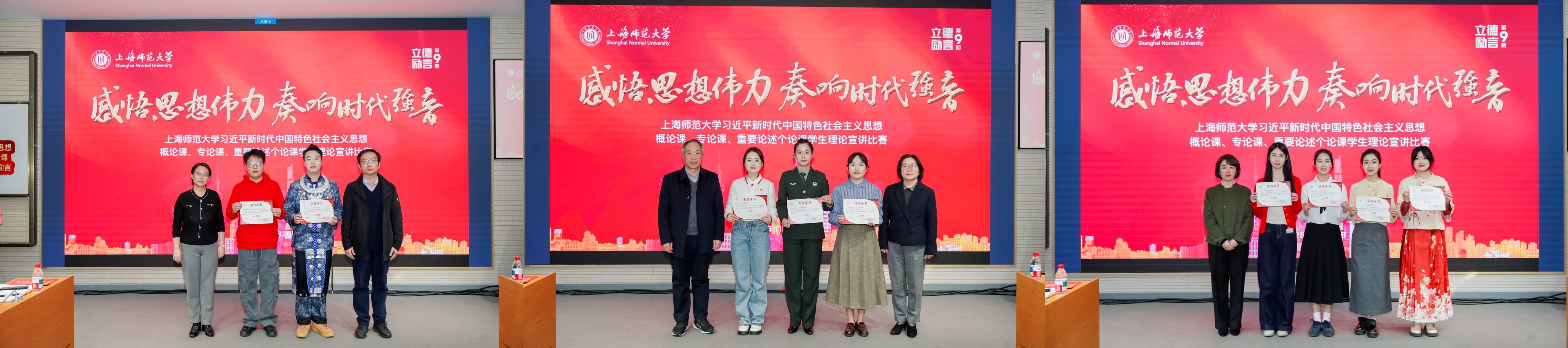 经过评委现场打分评选,习近平生态文明思想专论课程宣讲团课程《峡谷藏秀·布依风情绘生态新篇》、习近平新时代中国特色社会主义思想概论课程宣讲团课程《从十二秒到永恒——伟大抗战精神的时代回响》荣获一等奖。“弘扬教育家精神”个论课程宣讲团课程《师者何为?灯火长明照初心——从廖世承教育情怀看师者使命担当》、习近平强军思想专论课程宣讲团课程《以青春赴使命,以强军护强国》、党的青年工作个论课程宣讲团课程《以青春之我,赴西部之约——以教育微光筑梦强国》荣获二等奖。习近平文化思想专论课程宣讲团课程《文旅“破圈”的核心密码:让文化服务贴地而行》、习近平经济思想专论课程宣讲团课程《从“大国重器”到“大国工匠”:让青年的蓝天之梦照进中国经济的时代蓝图》、习近平法治思想专论课程宣讲团课程《城市心脏的“小法庭”,守护黄浦江畔的“大民生”》以及习近平外交思想专论课程宣讲团课程《进博行动:构建人类命运共同体的中国实践》荣获三等奖。