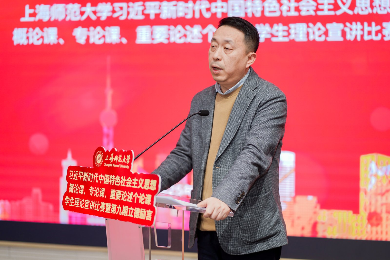 11月26日下午,学校举行习近平新时代中国特色社会主义思想概论课、专论课、重要论述个论课学生理论宣讲比赛。校党委副书记、副校长朱惠军,华东师大一附中副校长、正高级教师、我校1994级思想政治教育专业优秀校友陈明青,上海外国语大学党委学生工作部部长王一林,马克思主义学院教授、博士生导师石书臣,相关职能部门负责人以及宣讲团师生代表参加。