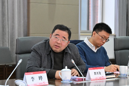 王健在会上介绍了学校推进习近平新时代中国特色社会主义思想课程群建设的相关工作举措以及相应组织保障机制和政策支持的优化方案。包括深化课程体系构建、教学资源开发、数智教学革新、实践育人融通、协同创新联盟等“五大工程”,以及相应组织与保障机制的优化方案。